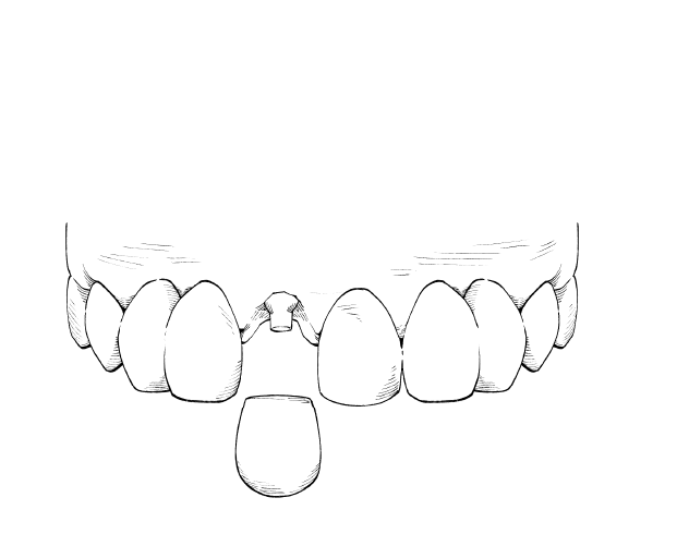 事故のため折れてしまった4本の前歯部分の治療。被せ物治療と根幹治療を行った。